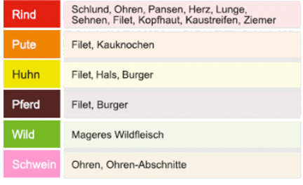 Es werden verschiedenste getrocknete Natur Kauartikel für jede Hundegröße und jedes Hundealter hergestellt. Da der Großteil des Rohmaterials aus eigener Zerlegung stammt, können wir einen gleichbleibenden Standard garantieren.